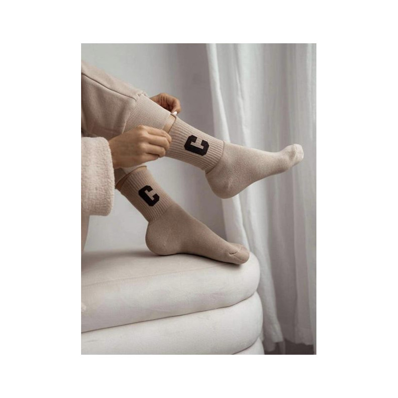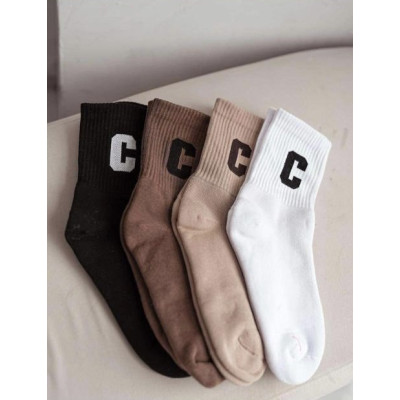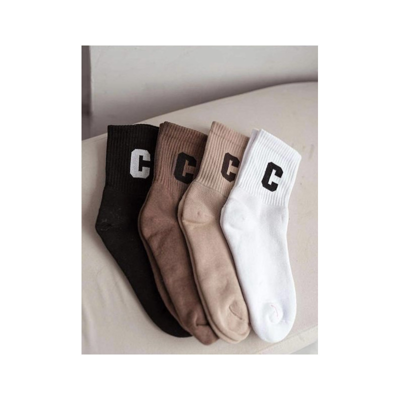 Klasyczne, sportowe skarpetki z aplikacją w postaci literki "C". Górna część z prążkowanym ściągaczem.