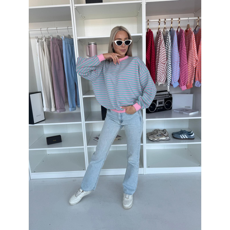 NOWOŚĆ - bluza STRIPES w odcieniu szałwii w jasnoróżowe, cienkie paseczki.