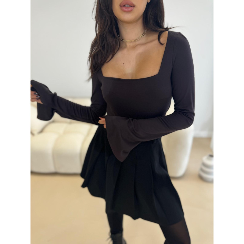 Bluzka z rozcięciami ME GUSTA - czekolada