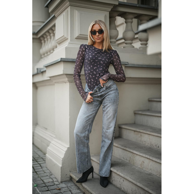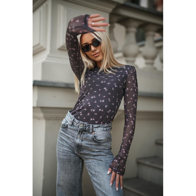 Dopasowana bluzka wykonana z siateczkowego materiału z dodatkiem wiskozy to propozycja pełna kobiecego uroku. Model ma długi, przylegający rękaw i klasyczny, zabudowany dekolt, dzięki czemu świetnie sprawdzi się w codziennych i eleganckich stylizacjach.