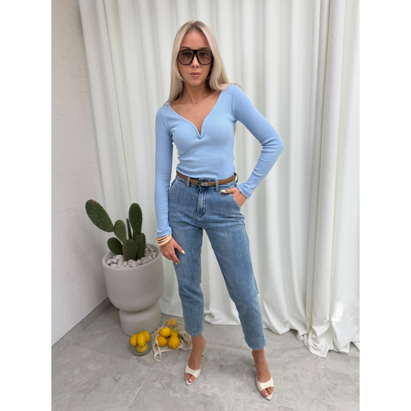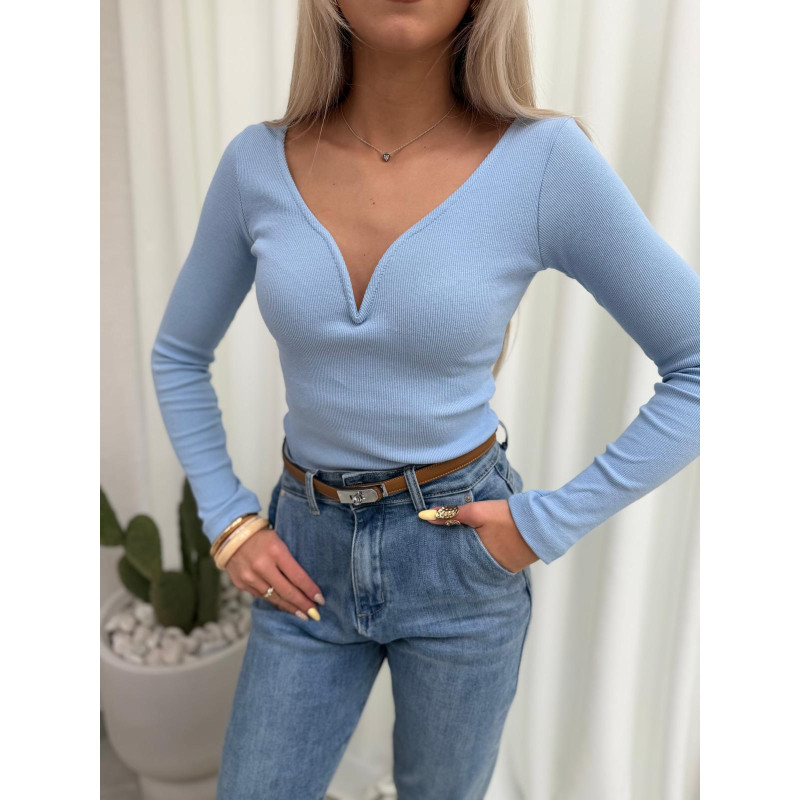 Dopasowana bluzka SOFT z długim rękawem i subtelnym i usztywnianym dekoltem w kształcie litery V pięknie podkreśla biust oraz sylwetkę. Prążkowany materiał nadaje jej seksapilu i elegancji. To bluzka, którą założysz zarówno na co dzień, jak i na wyjście - wystarczy zmienić dodatki :)