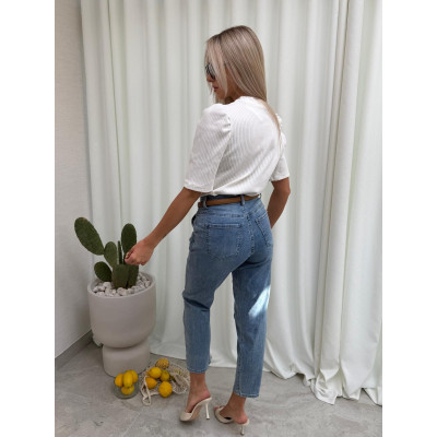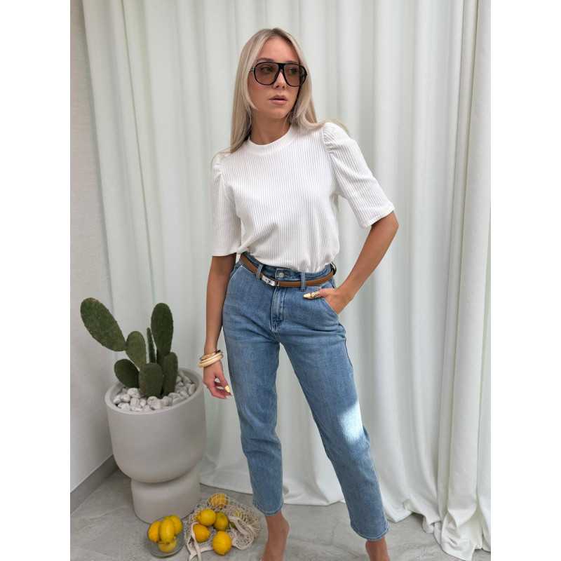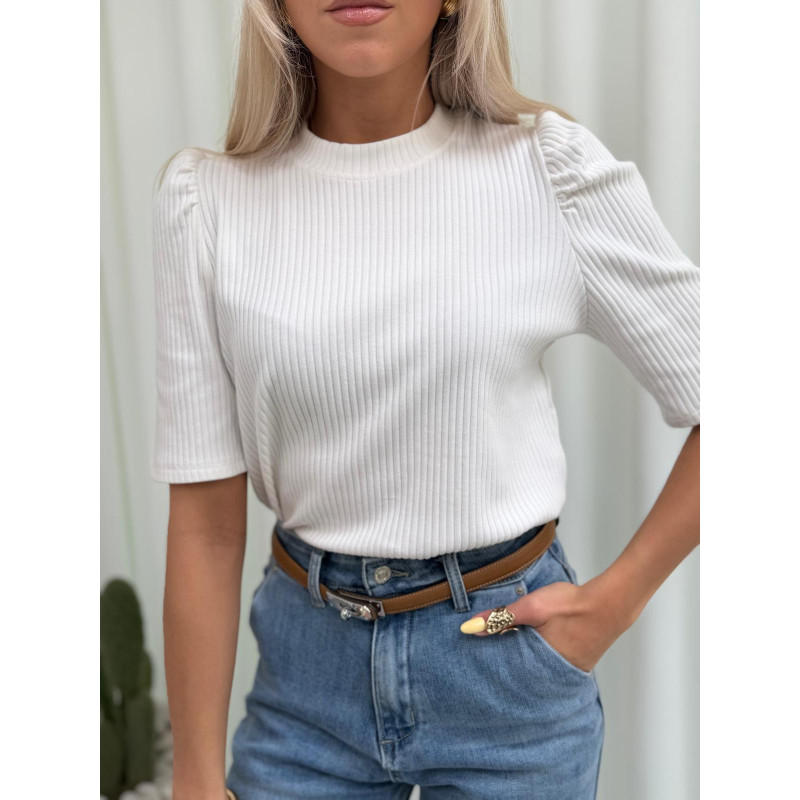 Prążkowana bluzka PRIMAVERA z krótkim rękawem i subtelnym bufkowaniem na ramionach - delikatna, kobieca i totalnie wiosenna.