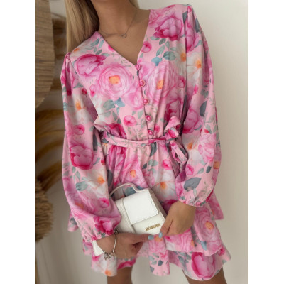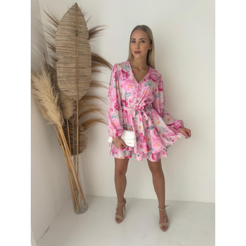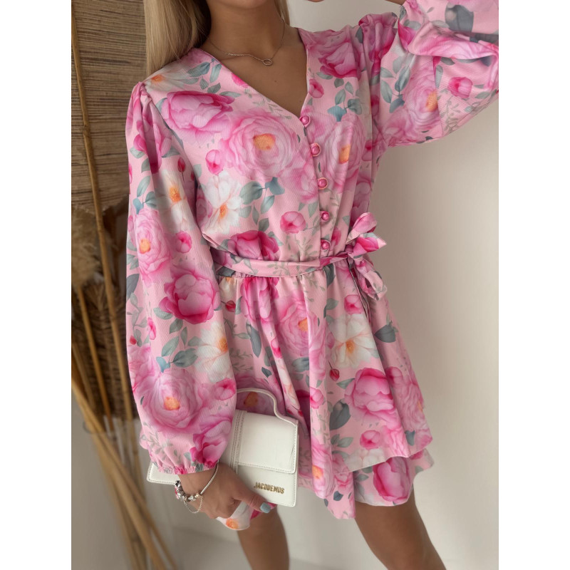 Kwiatowy print w odcieniach różu, wiązanie w talii i subtelne guziczki tworzą efekt WOW bez wysiłku