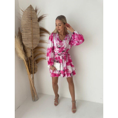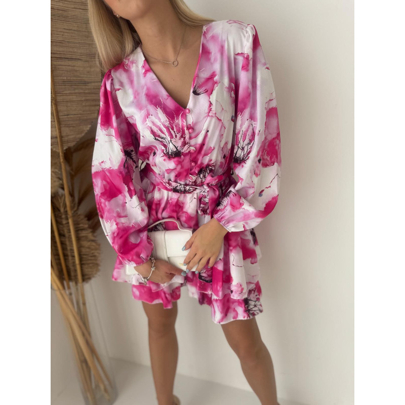 Kwiatowy print w odcieniach różu, wiązanie w talii i subtelne guziczki tworzą efekt WOW bez wysiłku