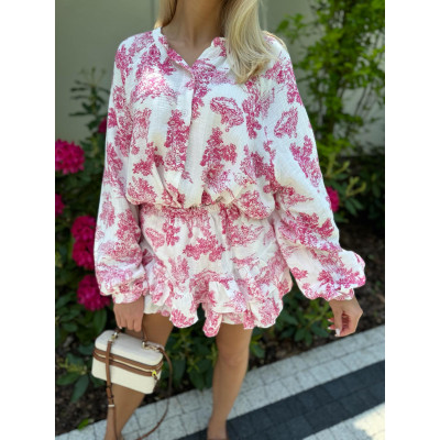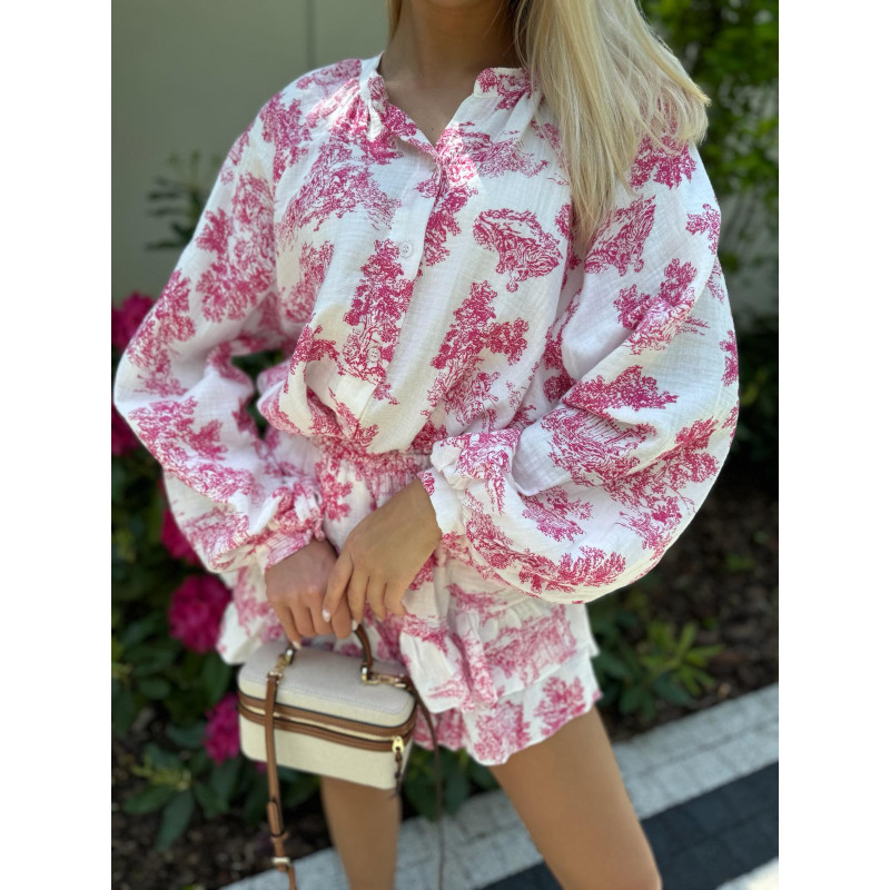 Komplet składa się z luźno skrojonej koszul i wygodnych spódnico-spodenek.