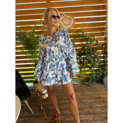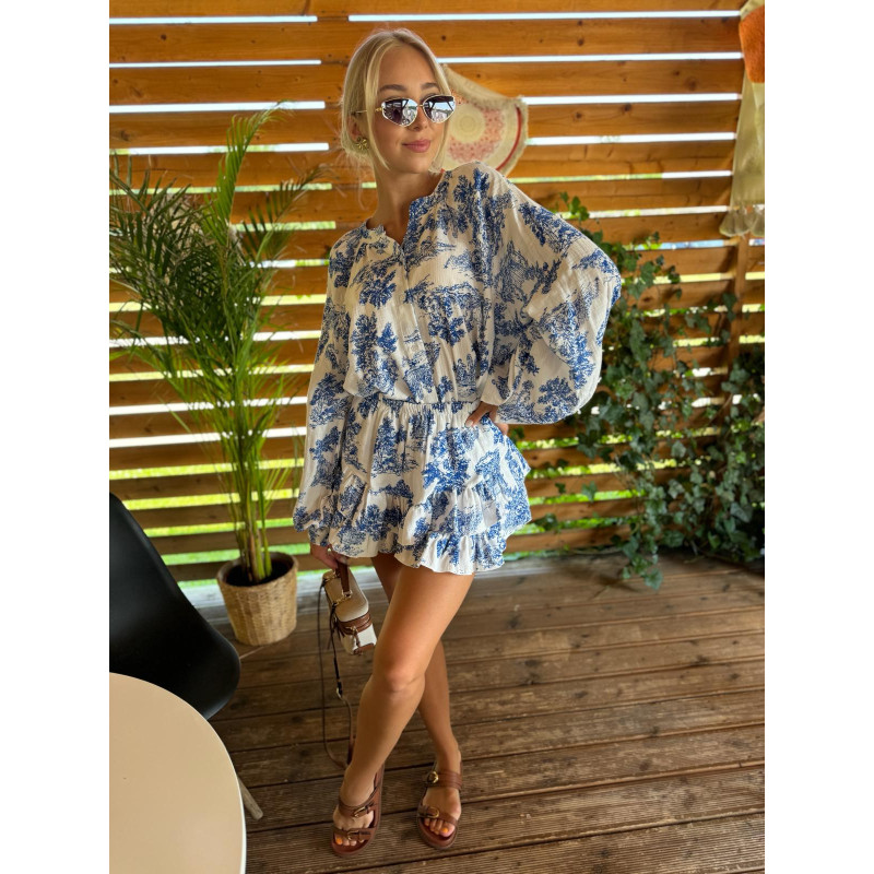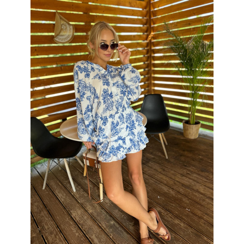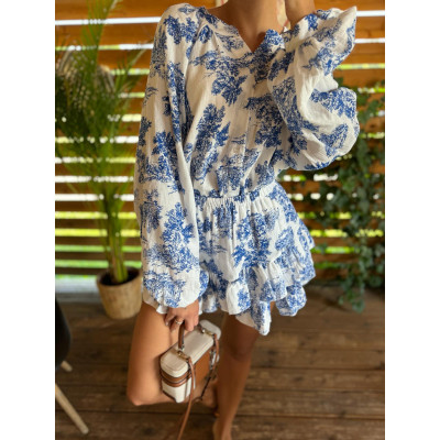 Spódnico-spodenki na gumce są zarówno wygodne jak i stylowe - dzięki elastycznej talii zapewniają doskonałe dopasowanie i łatwość zakładania. Ich luźny krój nie tylko podkreśla lekkość całej stylzacji, ale również skutecznie ukrywa wszelkie niedoskonałości, co czyni je idealnym wyborem dla każdej sylwetki. Całość zestawu pokryta jest delikatnym, kwiatowym printem.