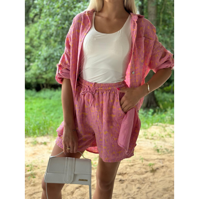 Muślinowy komplet SUNNY JOY w malinowe paseczki to idealne rozwiązanie na każdą okazję. Wykonany z wysokiej jakości bawełny, zapewnia komfort i styl. Nasz komplet składa się z koszuli i spodenek.