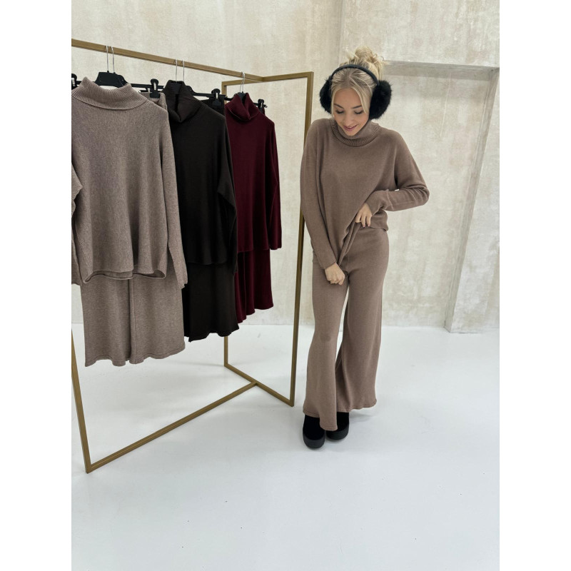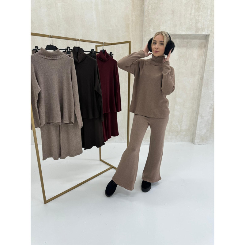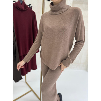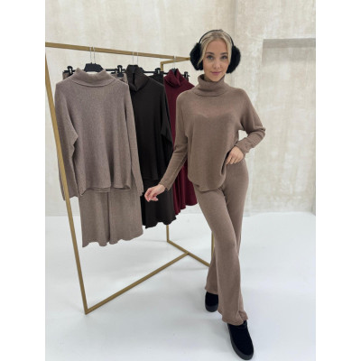 Komplet dzianinowy z golfem LAURA - ciemny beż