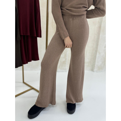 Dzianinowy komplet LAURA składa się z miękkiego, ciepłego golfu oraz spodni z szerokimi nogawkami, które łączą w sobie wygodę i elegancję. Delikatny, prążkowany materiał idealnie układa się na sylwetce, zapewniając komfort noszenia przez cały dzień.