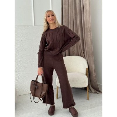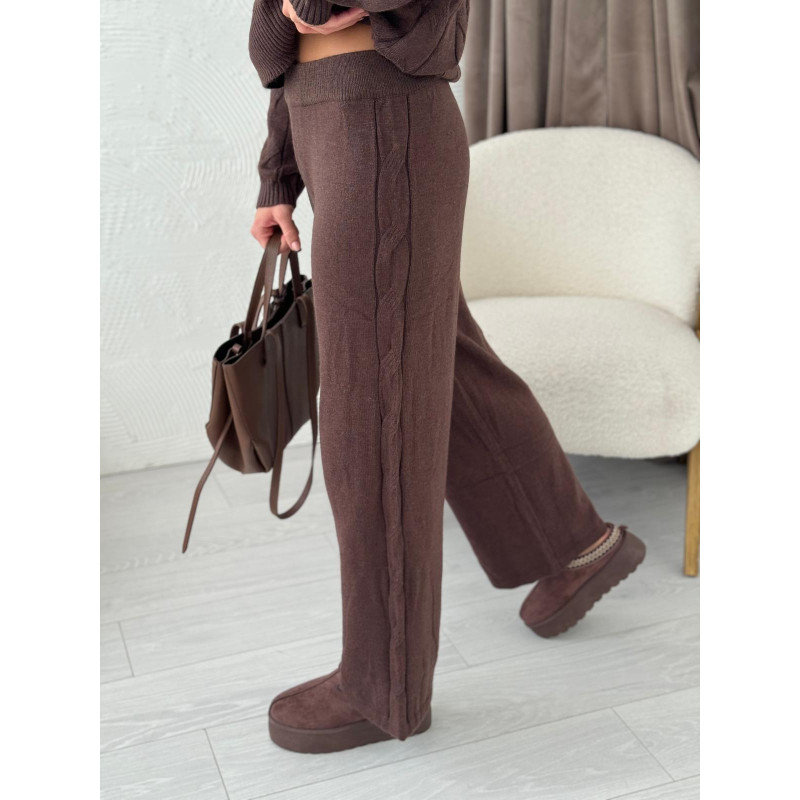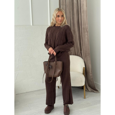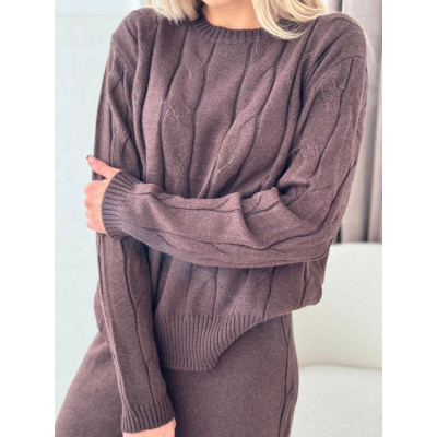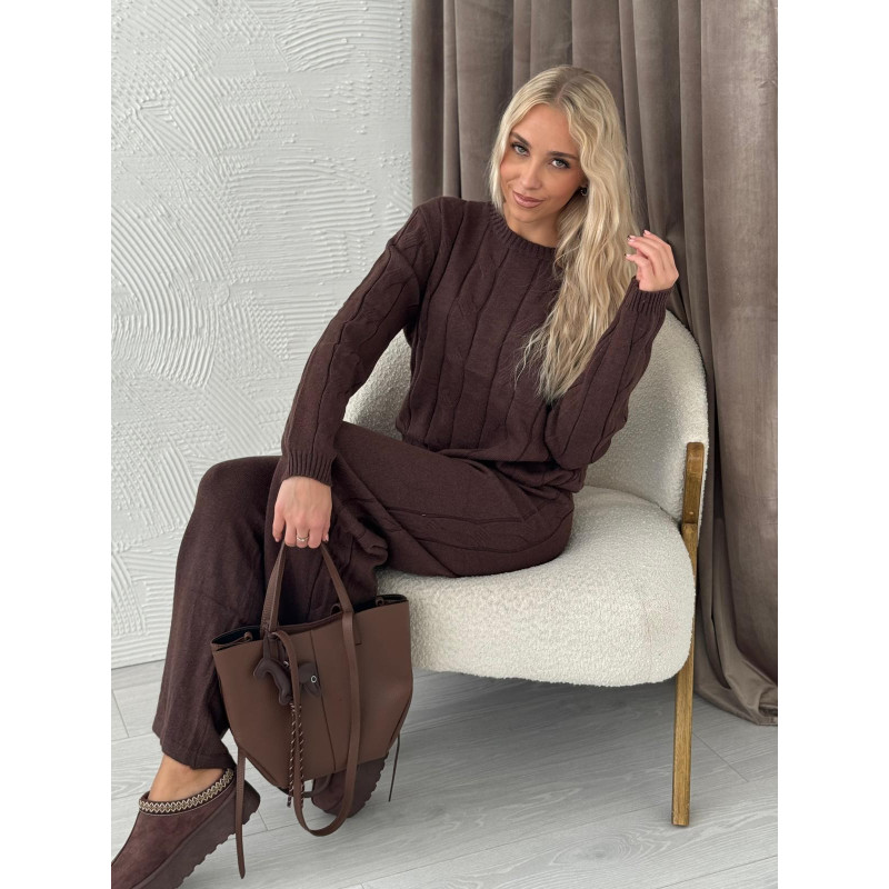 Komplet VERONA z warkoczowym splotem - czekolada