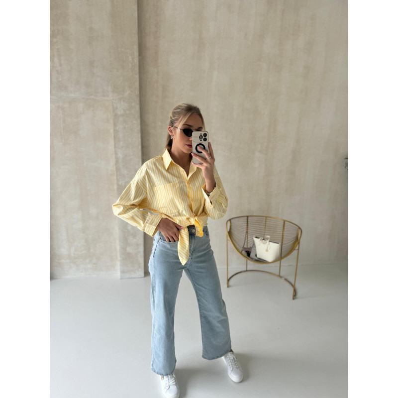Dół koszuli można zawiązać, nadając stylizacji lekkości i kobiecego uroku. Świetnie prezentuje się zarówno z legginsami, jak i jeansami wide leg, tworząc swobodne, a jednocześnie stylowe zestawy.