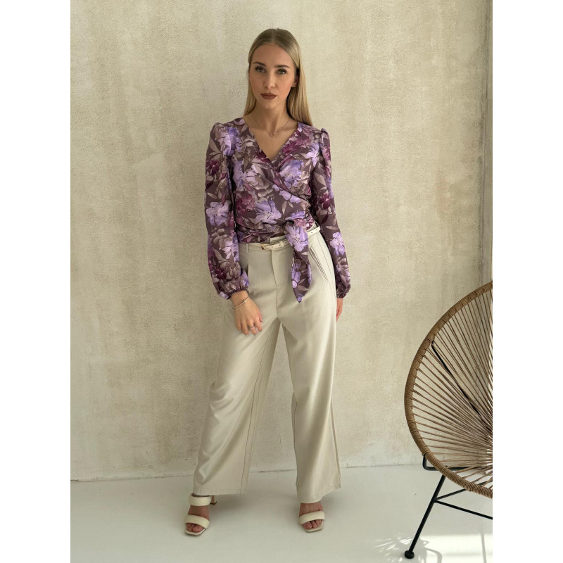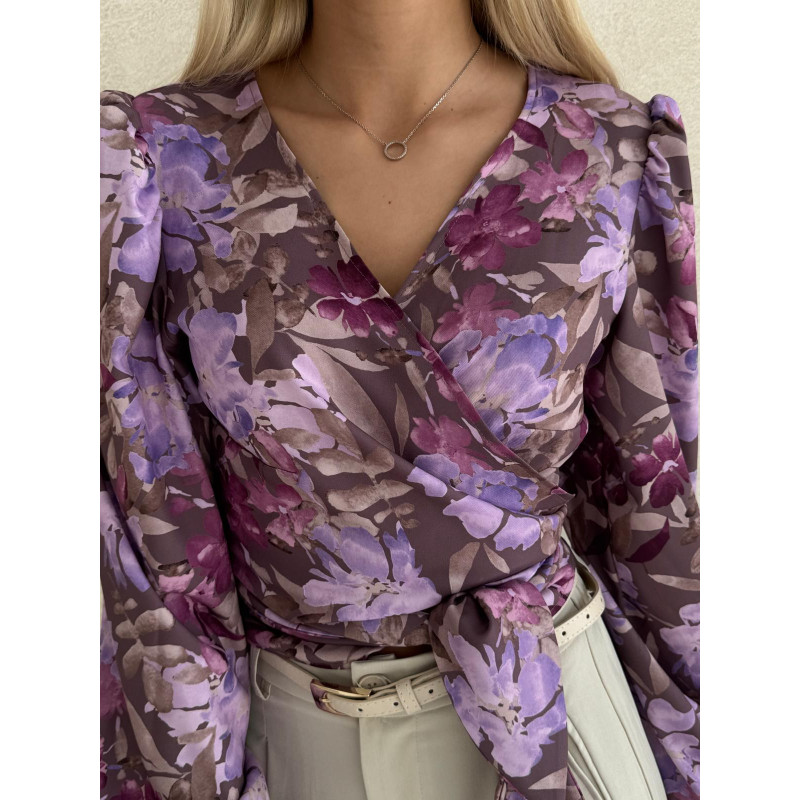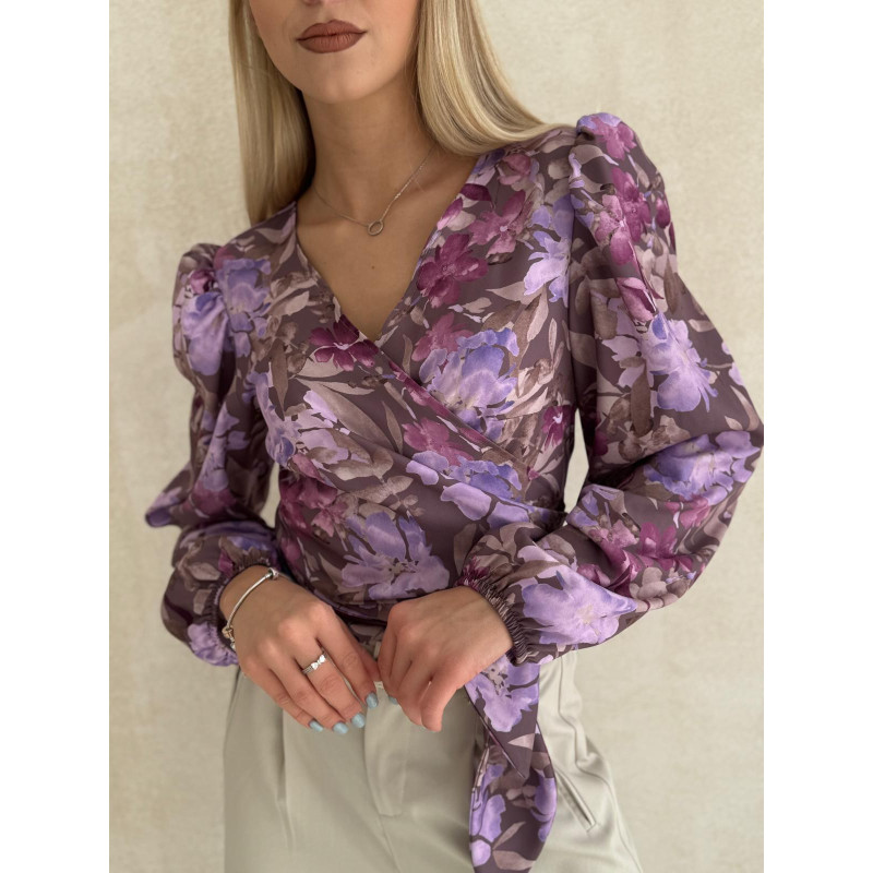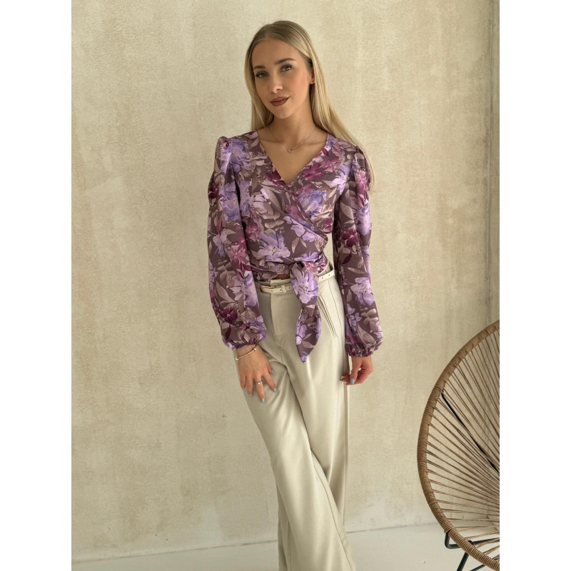 Koszula PASTEL FLOWERS w pastelowym odcieniu fioletu to idealne połączenie kobiecości, swobody i stylu, które sprawdzi się w każdej garderobie. Przewiązywany fason w biuście pięknie modeluje sylwetkę i tworzy zmysłowy dekolt w kształcie litery V, subtelnie podkreślając atuty figury, a jednocześnie nadając bluzce nutę casualowego luzu. To model, który zachwyca detalami – delikatne marszczenia na ramionach tworzą subtelne bufki, dodając całości romantycznego uroku, natomiast rękawy wykończone gumką zapewniają komfort i lekkość, sprawiając, że bluzka prezentuje się niezwykle stylowo.