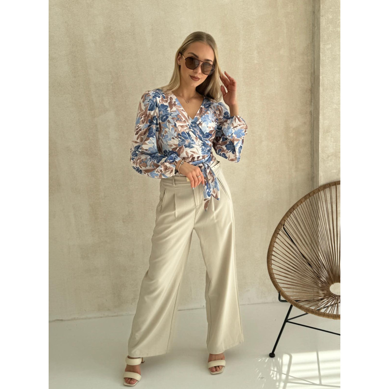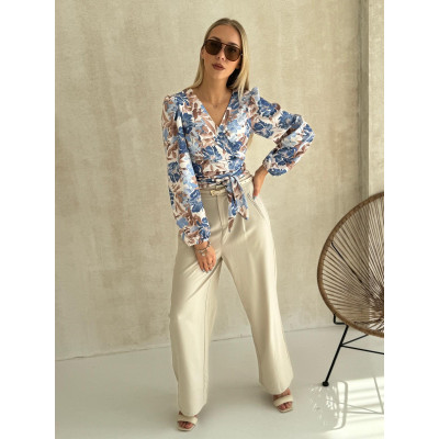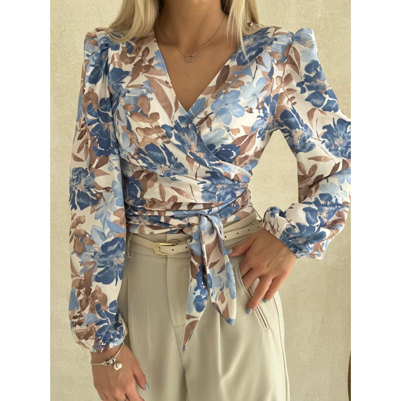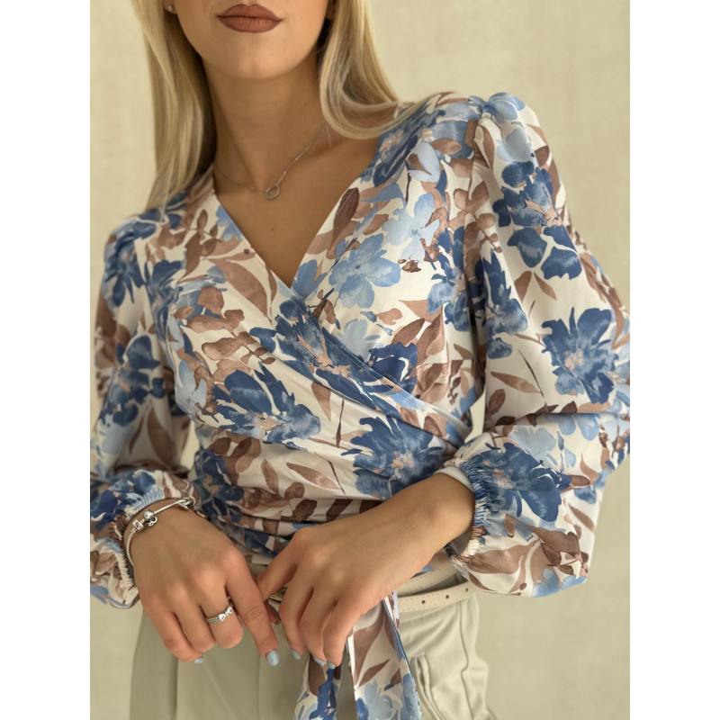 Koszula PASTEL FLOWERS w odcieniu beżu i błękitu to idealne połączenie kobiecości, swobody i stylu, które sprawdzi się w każdej garderobie. Przewiązywany fason w biuście pięknie modeluje sylwetkę i tworzy zmysłowy dekolt w kształcie litery V, subtelnie podkreślając atuty figury, a jednocześnie nadając bluzce nutę casualowego luzu. To model, który zachwyca detalami – delikatne marszczenia na ramionach tworzą subtelne bufki, dodając całości romantycznego uroku, natomiast rękawy wykończone gumką zapewniają komfort i lekkość, sprawiając, że bluzka prezentuje się niezwykle stylowo.