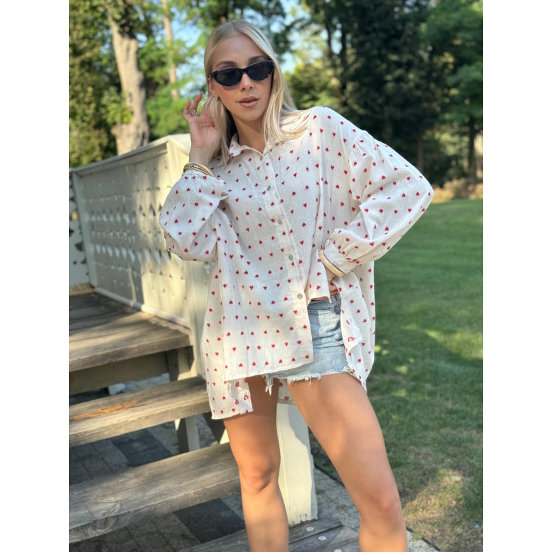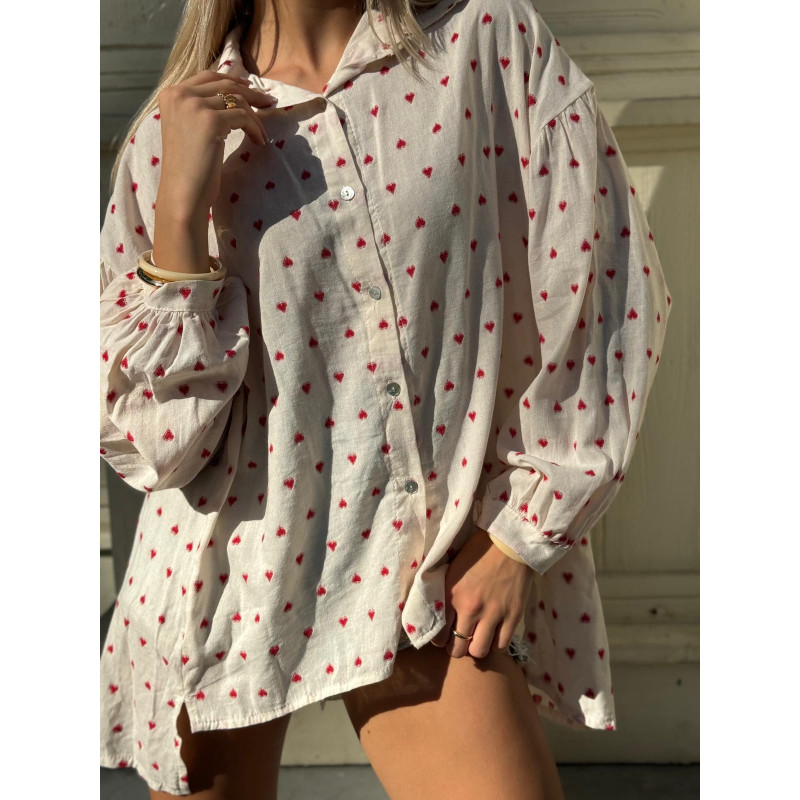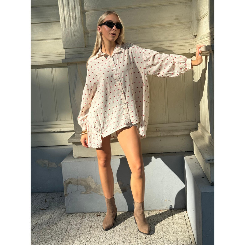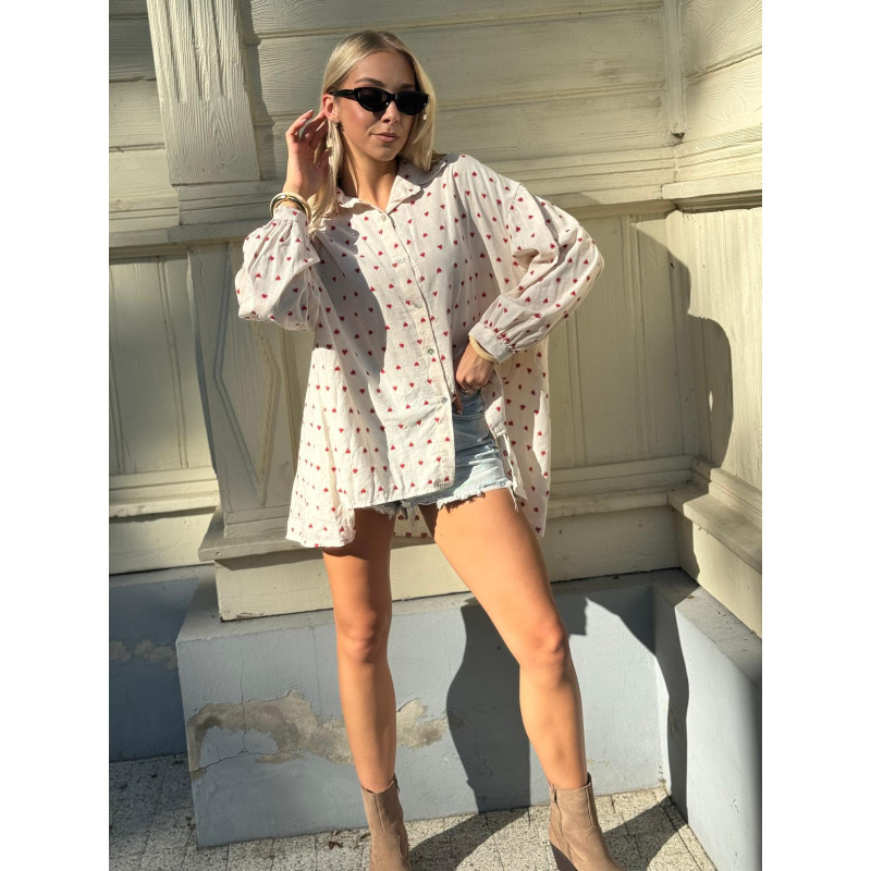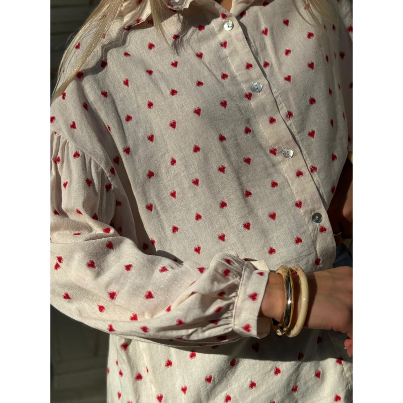 Koszula LANA uszyta z przewiewnej, miękkiej bawełny ozdobionej uroczym haftem w drobne serduszka.