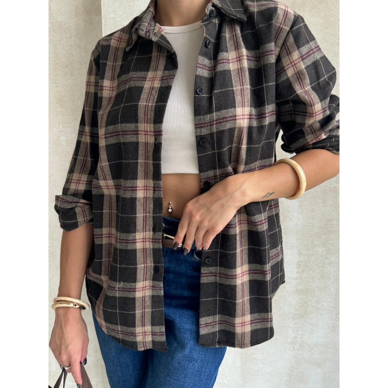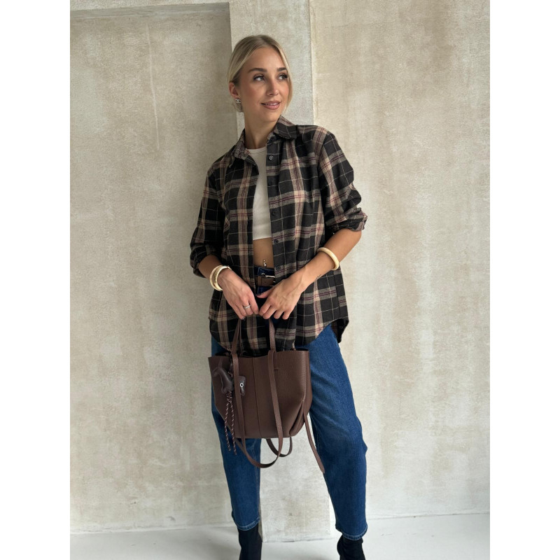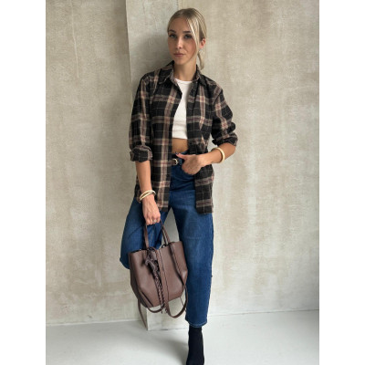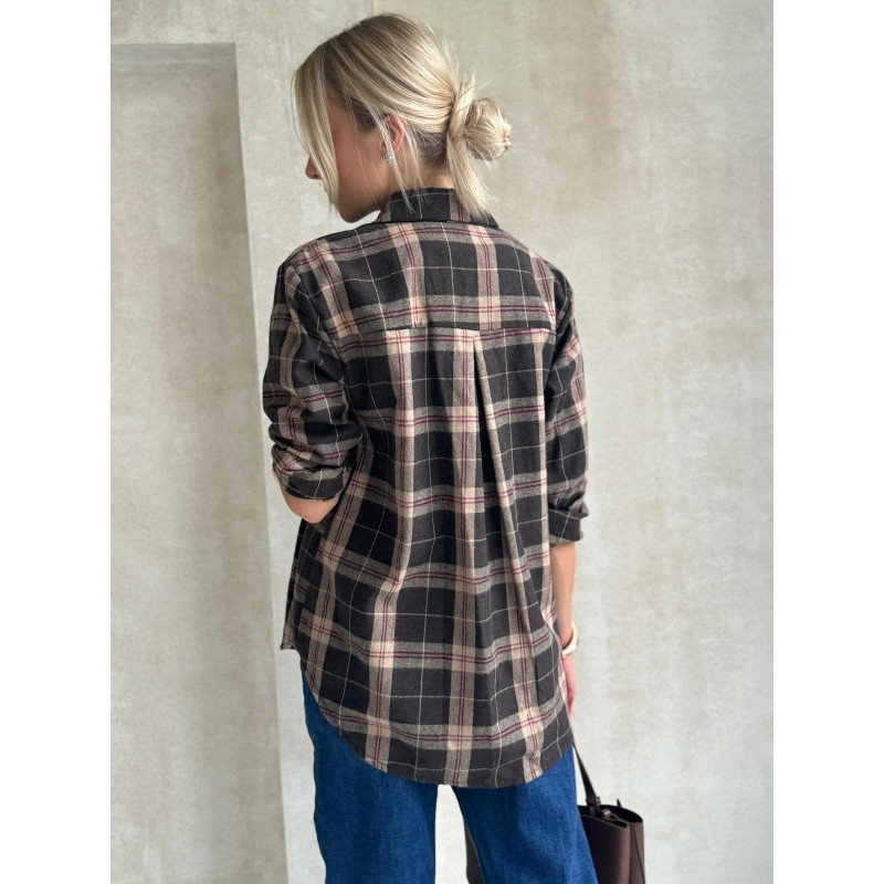 Koszula w kratę HARPER w bardzo ciemnym odcieniu brązu w beżową kratę to jesienny klasyk, który totalnie podbija stylizacje w klimacie vintage i country. Miękka w dotyku tkanina sprawia, że nosi się ją niezwykle komfortowo, a luźny, lekko wydłużony krój daje swobodę i luz, o jaki chodzi codziennych outfitach.