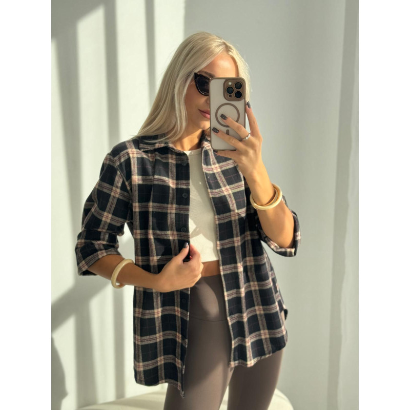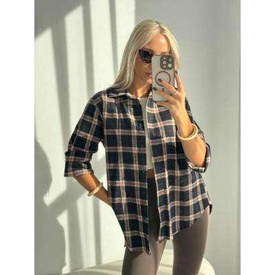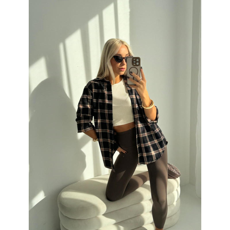 Koszula HARPER - czarna w beżową krata