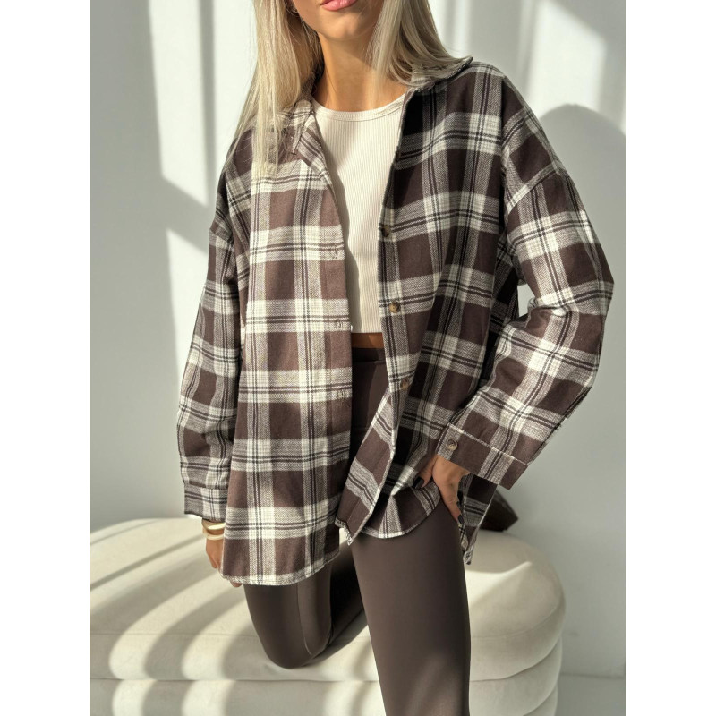 Koszula w kratę HARPER w bardzo ciemnym odcieniu brązu w beżową kratę to jesienny klasyk, który totalnie podbija stylizacje w klimacie vintage i country. Miękka w dotyku tkanina sprawia, że nosi się ją niezwykle komfortowo, a luźny, lekko wydłużony krój daje swobodę i luz, o jaki chodzi codziennych outfitach.