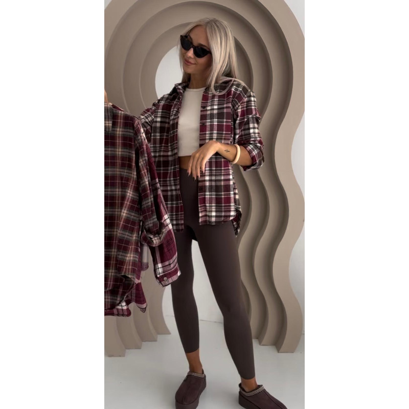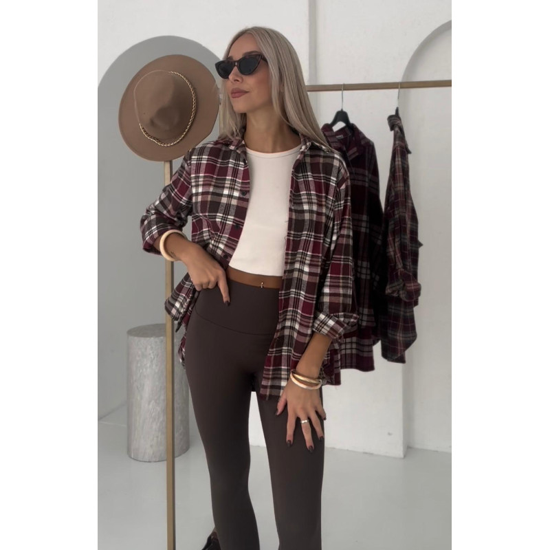 Koszula HARPER - bordowa w biało-brązową kratkę