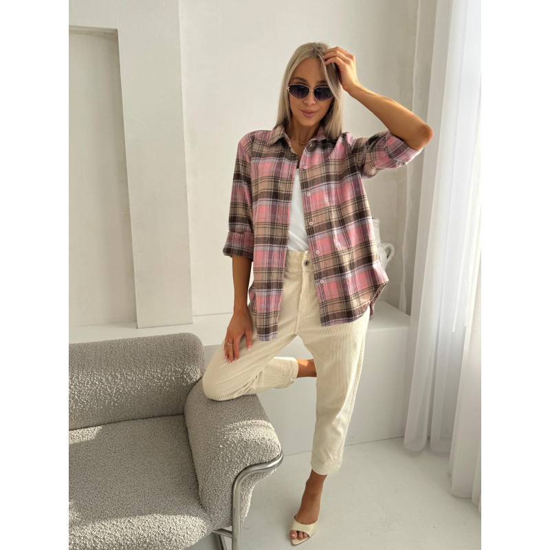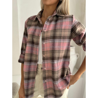 Koszula SPRING to lekka, wygodna propozycja na co dzień, która świetnie sprawdzi się w wiosennych stylizacjach. Różowo-brązowa krata nadaje jej miękki, ciepły charakter i łatwo łączy się z jasnymi sztruksowymi spodniami, jeansami czy topem pod spód.