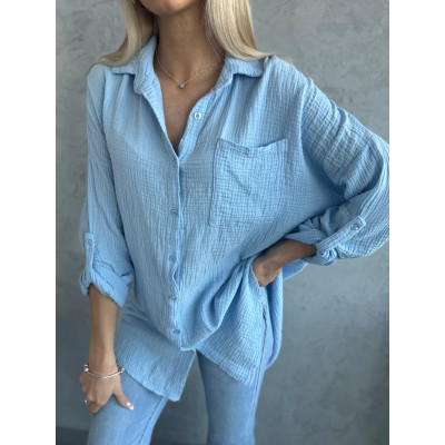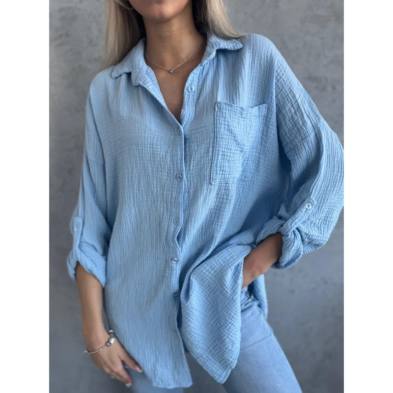 Koszula muślinowa GRETA o oversizowym, lekko wydłużonym kroju to doskonała baza do codziennych, a jednocześnie stylowych stylizacji. Lekka, przewiewna i niezwykle komfortowa, idealnie sprawdzi się w cieplejsze dni.