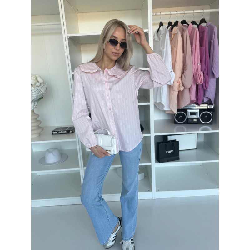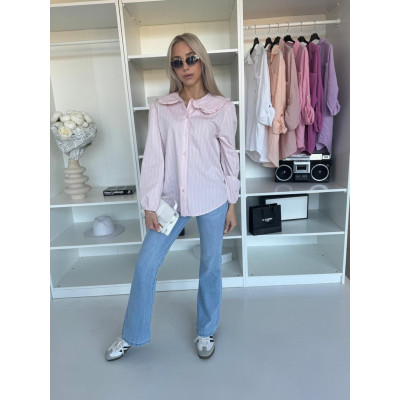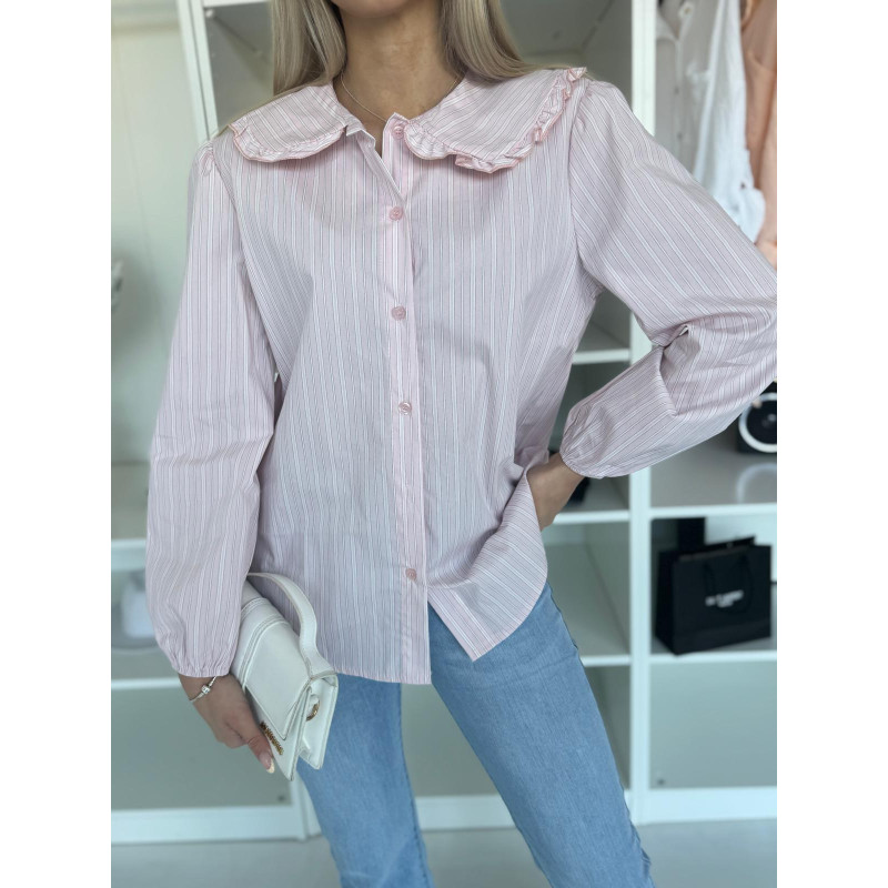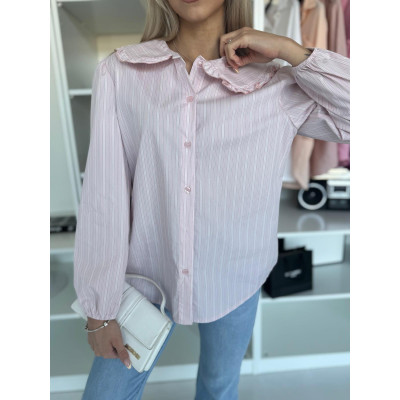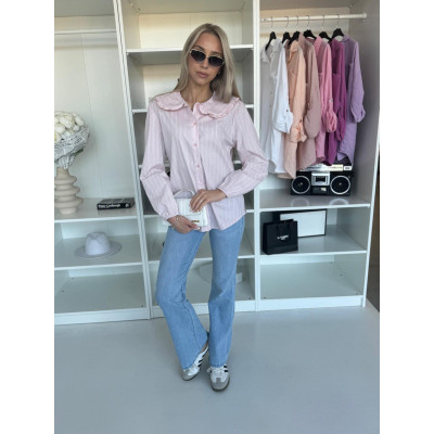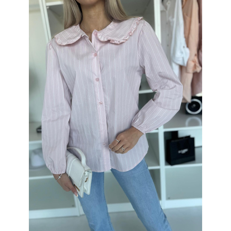 Urocza koszula zapinana na guziki z dużym, ozdobnym kołnierzykiem wykończonym falbanką.