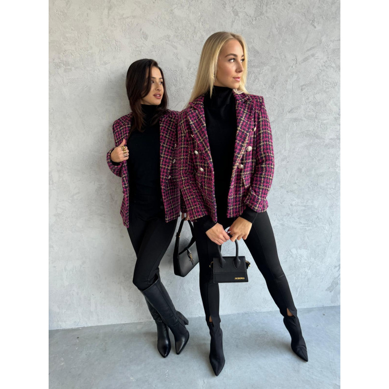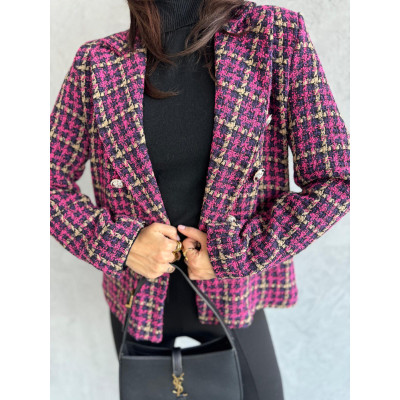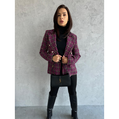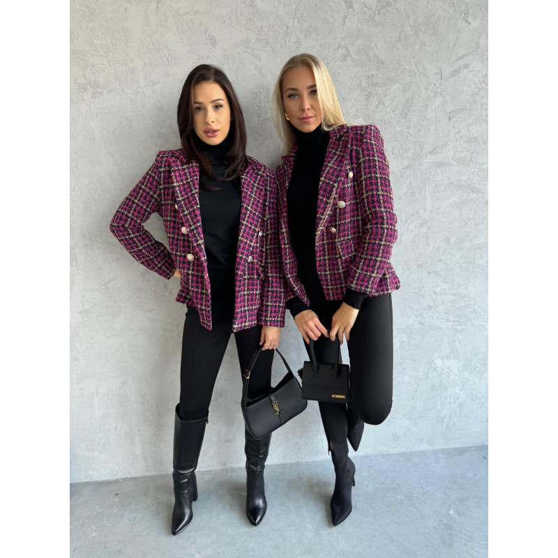Wykonana z materiału przypominającego tweed i wykończona gładką podszewką, sprawdzi się zarówno na co dzień, jak i na bardziej formalne okazje.
