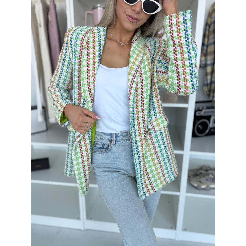 Klasyczna marynarka na podszewce w kontrastuj膮cym kolorze w pi臋knych, wiosennych kolorach.