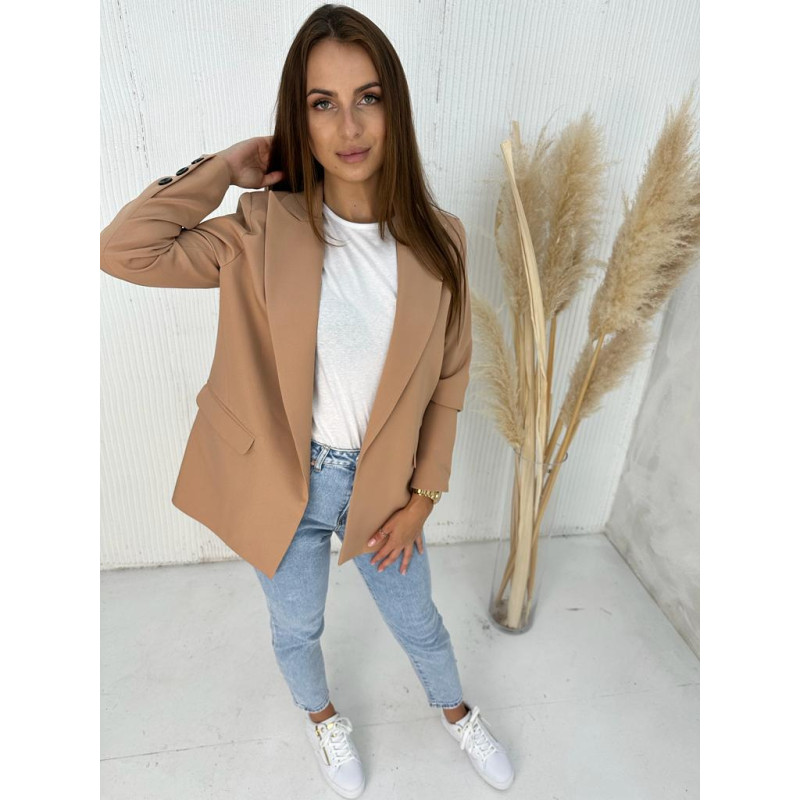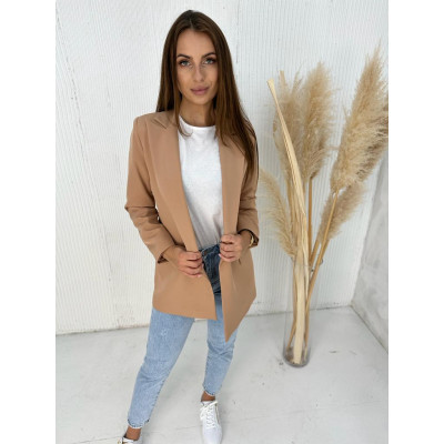 Model o przed艂u偶anym kroju, z imitacjami bocznych kieszeni. Marynarka nie zapinana, z ozdobnymi czarnymi guzikami na r臋kawach.聽