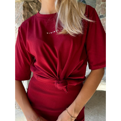 Bawe艂niany t-shirt MINIMAL o lu藕nym, oversize'owym kroju stanowi idealn膮 baz臋 do codziennych outfit贸w. Koszulka z minimalistycznym napisem z przodu, jest wszechstronnym elementem garderoby, 艣wietnie komponuj膮cym si臋 zar贸wno z casualowymi, jak i bardziej eleganckimi stylizacjami.