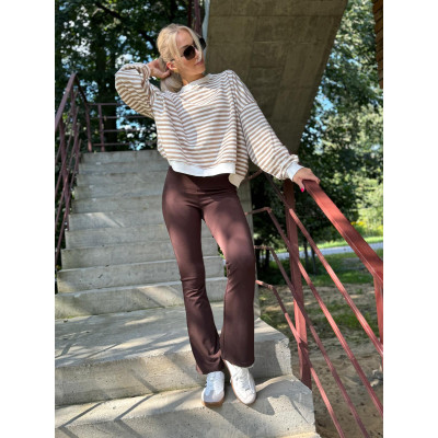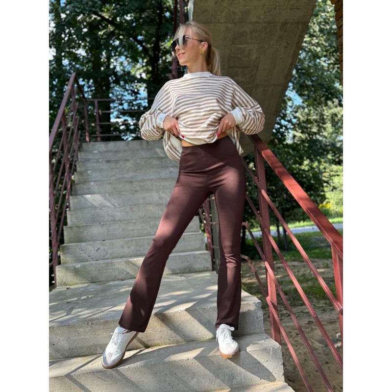 Spodnie dzwony to klasyczny fason, który zawsze wygląda elegancko i modnie. Ich unikalność polega na rozszerzonym wykończeniu nogawek, które dodaje im charakteru. Nasze spodnie Fancy w czekoladowym odcieniu brązu dodatkowo obecności wiskozy w składzie tkaniny sprawiają, że są miękkie, lekkie i przyjemne w noszeniu.