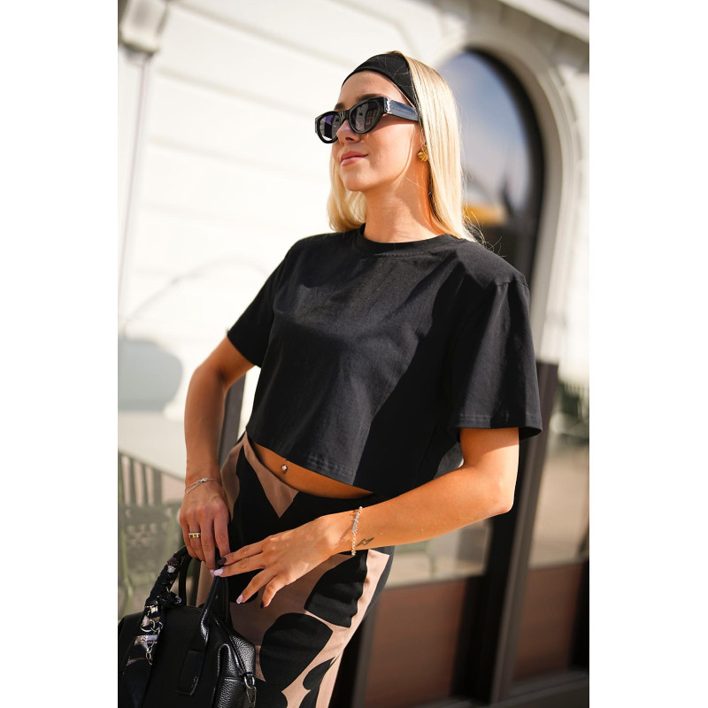 T-shirt BASIC LARA z krótkim rękawem to idealna baza do wielu stylizacji. Ma nieco krótszy krój niż standardowe modele, co świetnie komponuje się z ubraniami o wyższym stanie, takimi jak spodnie czy spódnice ołówkowe. Okrągły dekolt dodaje mu klasycznego charakteru, a miękka, bawełniana tkanina zapewnia wygodę noszenia i wysoką jakość. Ten wszechstronny t-shirt świetnie sprawdzi się zarówno w casualowych, sportowych zestawieniach, jak i w bardziej eleganckich stylizacjach.