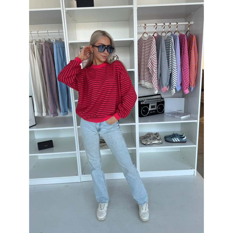 Bluza STRIPES w pięknym malinowym odcieniu, wzbogacona bordowymi paseczkami, to idealny wybór na chłodniejsze dni. Luźny krój z obniżoną linią ramion zapewnia wygodę i swobodę noszenia, sprawiając, że bluza świetnie sprawdzi się w casualowych stylizacjach. Delikatny ściągacz na dole i na rękawach dodaje bluzie wyrazistości i uroku, podkreślając jej unikalny charakter.