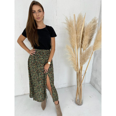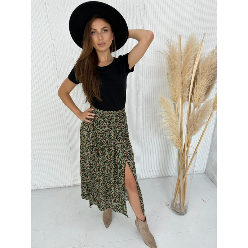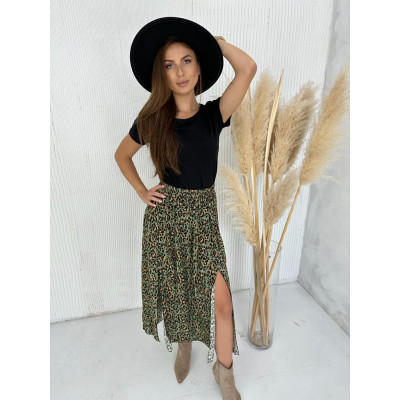 Wiskozowa spódnica o długości midi w jesiennym, zwierzęcym princie panterki.