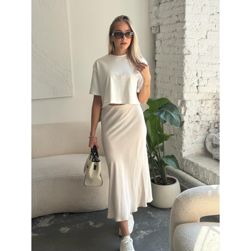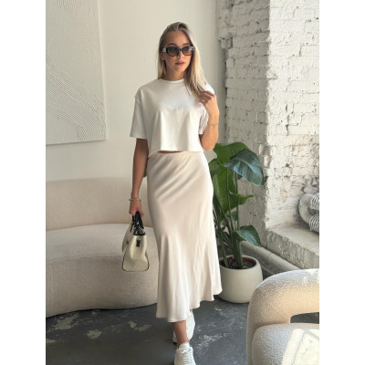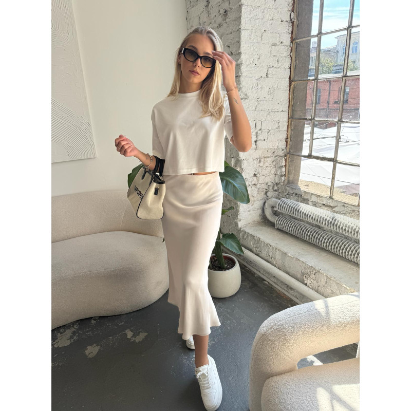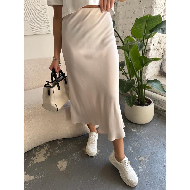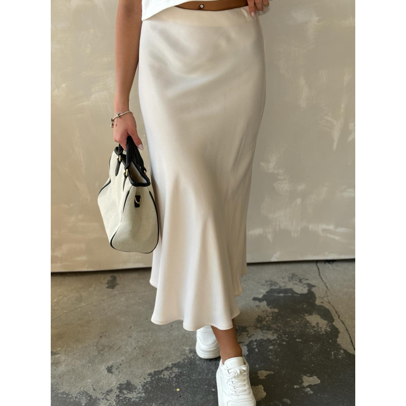 Spódnica LOREN o długości #midi w eleganckim odcieniu ecru. Wykonana z gładkiej tkaniny o satynowym wykończeniu.