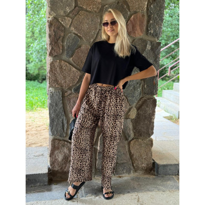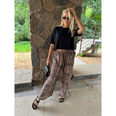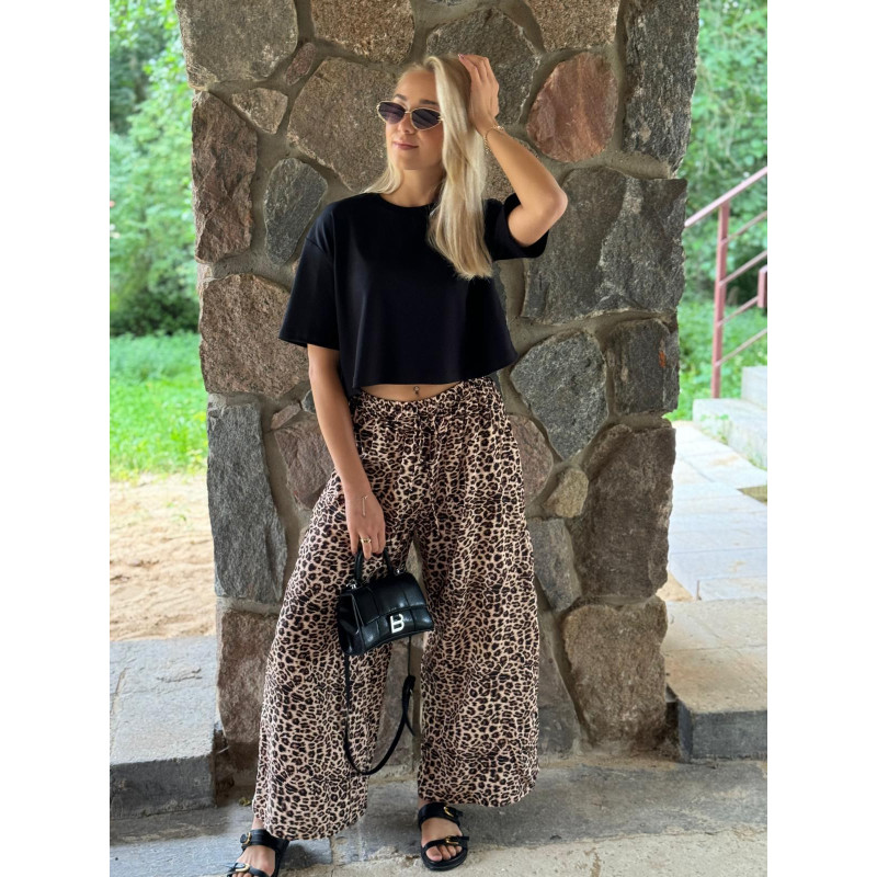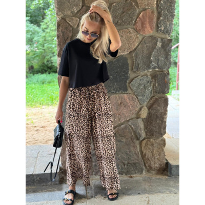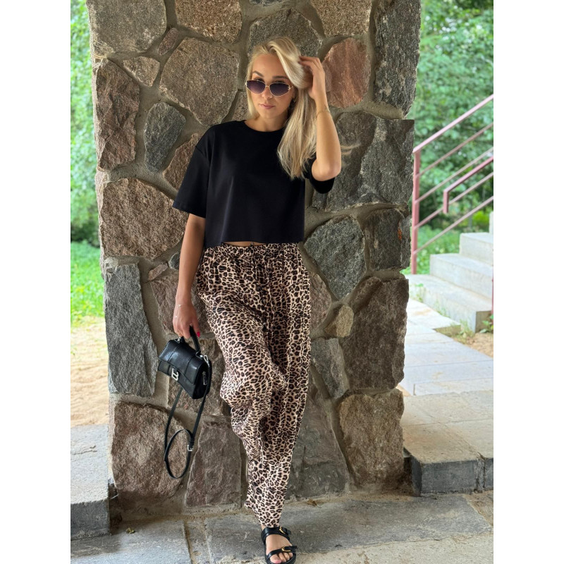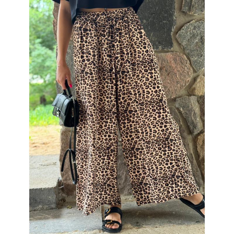 Wiskozowe spodnie w modnym princie panterki.
