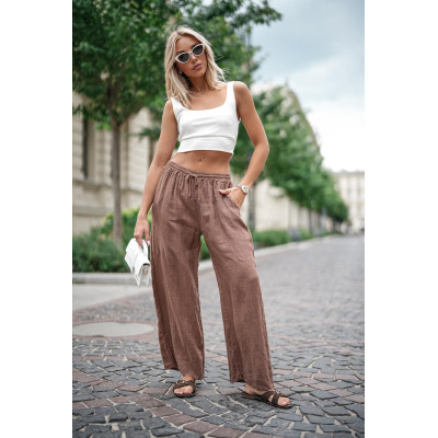 Model z szeroką nogawką, elastyczną talią i wiązaniem w pasie – idealne na lato!