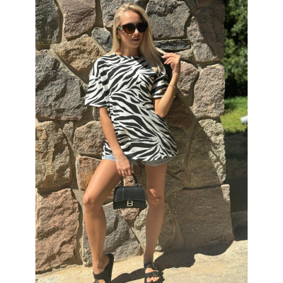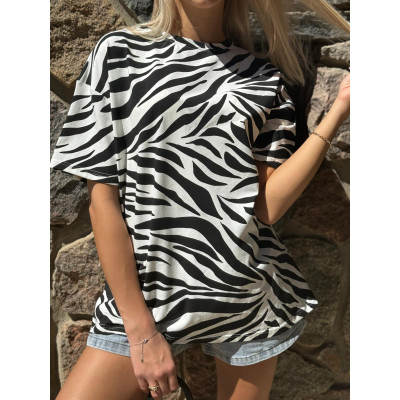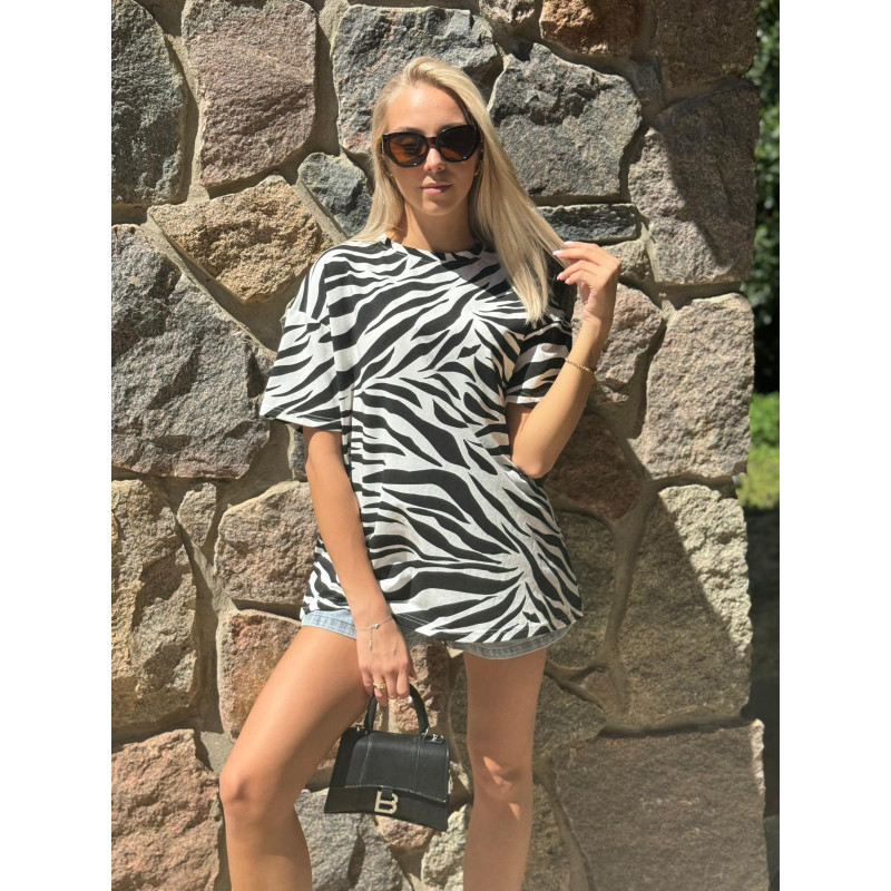 T-shirt ZEBRA w klasycznej kolorystyce. Luźny krój, mocno obniżona linia ramion.