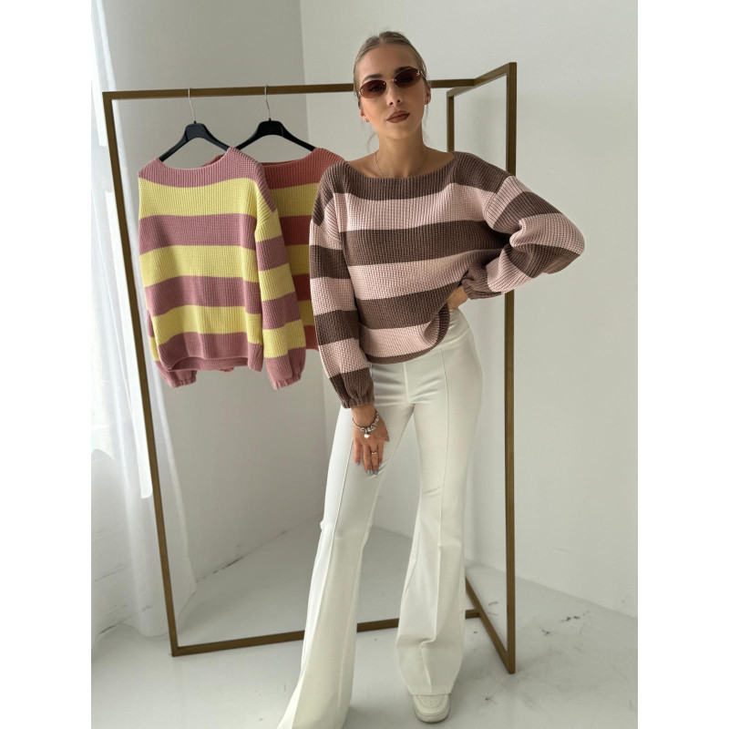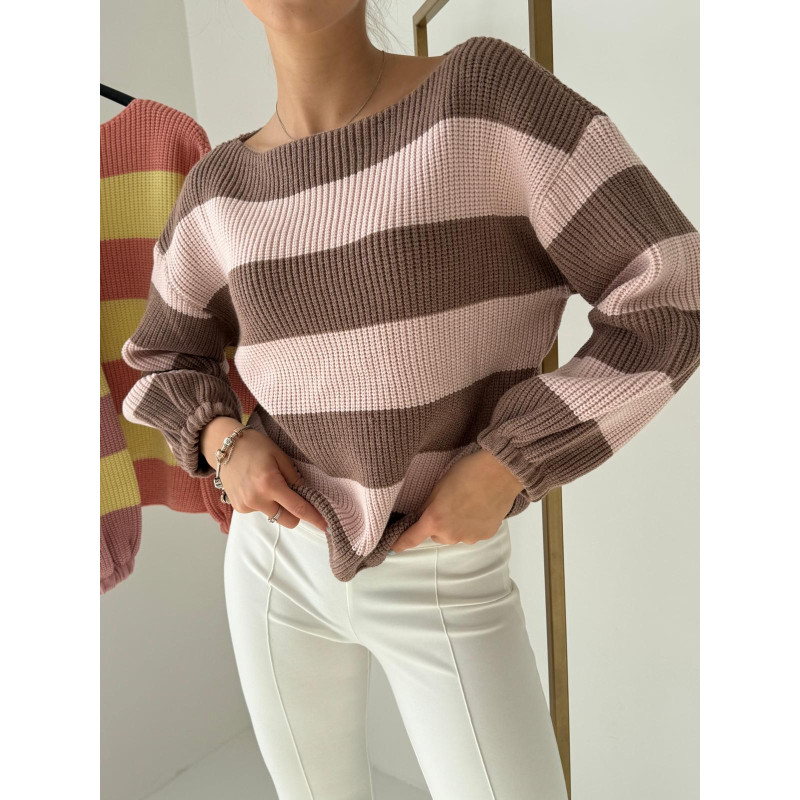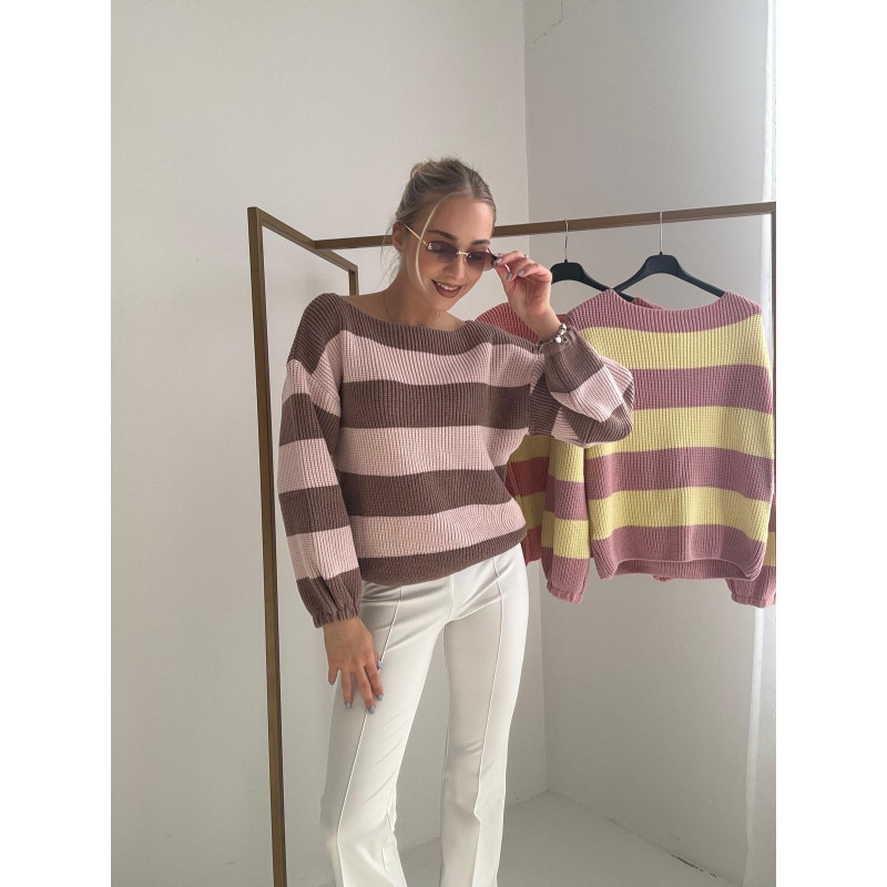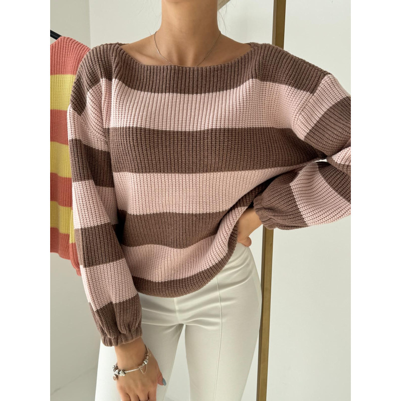 Sweterek w paski VENI - czekoladowo-różowy