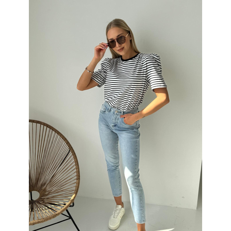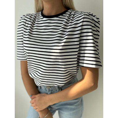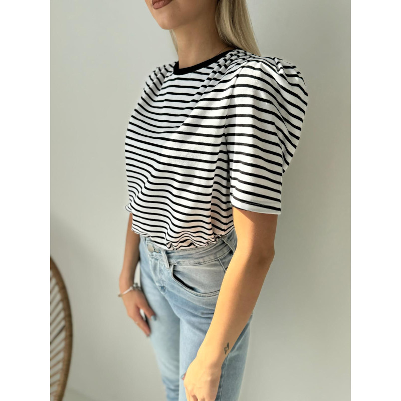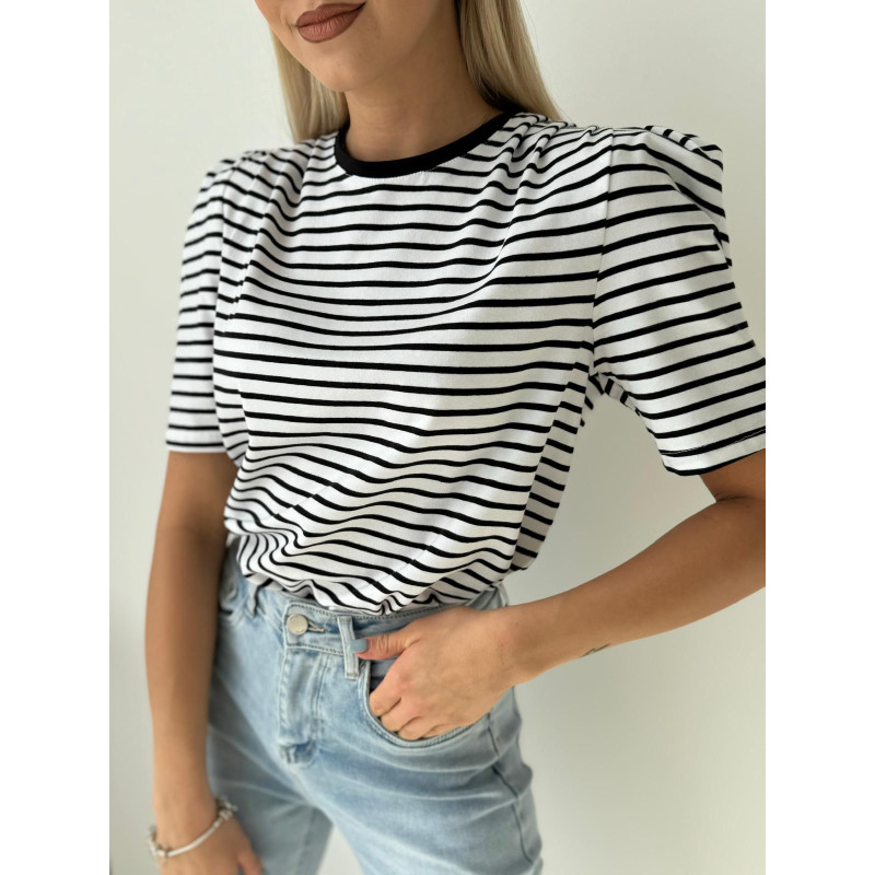 To nie jest zwykła bluzka w paski. „SORELLE” łączy klasykę z nowoczesną formą – dzięki bufiastym rękawkom i poduszkom na ramionach prezentuje się modnie, stylowo i z pazurem.