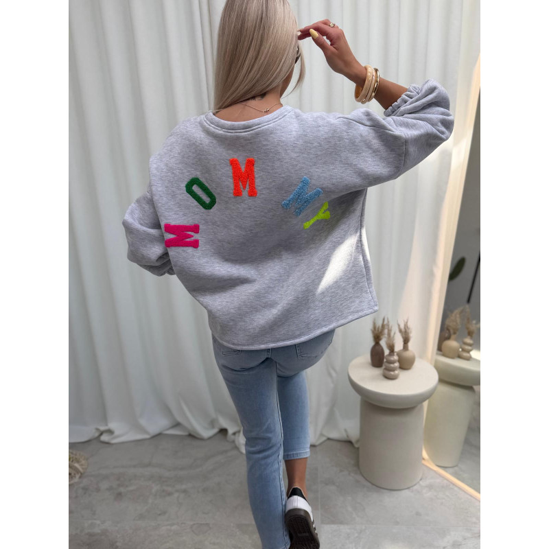 Bluza MOMMY - popielata z kolorowym napisem