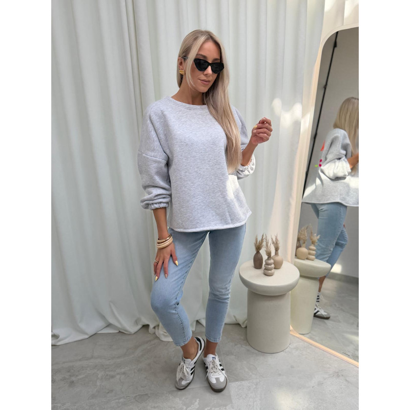 Popielata bluza MOMMY to must-have dla kobiet, które lubią wygodę. Minimalistyczny, klasyczny fason i kolorowy akcent na plecach tworzą idealny balans. Długie i lekko luźne rękawy zakończone są elastyczną gumką.