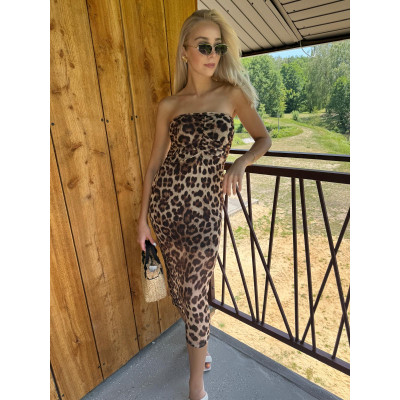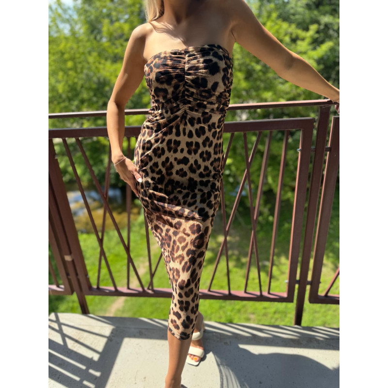 Ultra kobieca sukienka XANA w brązową panterkę.