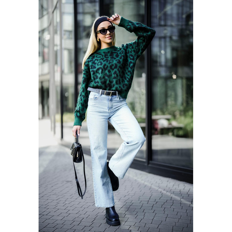 Dzięki swetrowi oversize z panterkowym wzorem każda z tych stylizacji zyska wyrazisty charakter, który przyciągnie uwagę, zachowując jednocześnie komfort i styl.