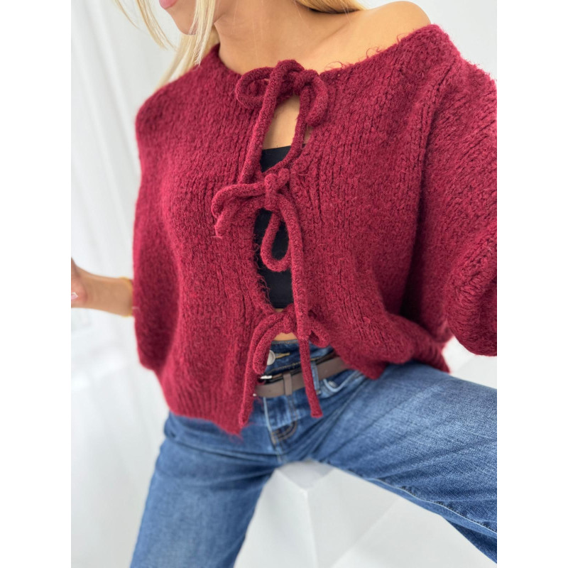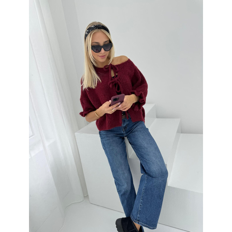 Kardigan z wiązaniem SWEET - bordo