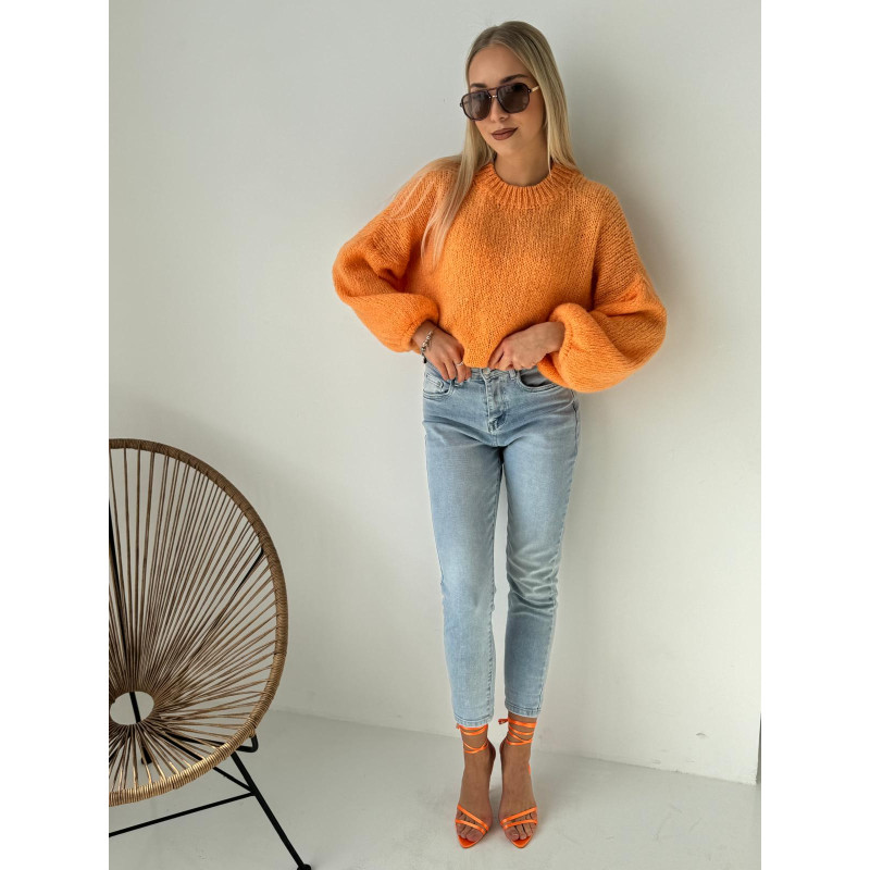 Klasyczny, zaokrąglony dekolt podkreśla uniwersalność swetra, a bufiaste rękawy stanowią modny akcent, który nadaje kobiecego uroku i stylu. Dzięki wyjątkowo przyjemnemu materiałowi noszenie go to czysta przyjemność!