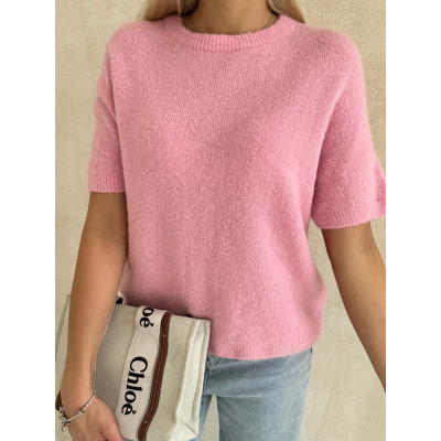 Delikatnie oversizowy fason z krótkim rękawem z elastycznymi ściągaczami na rękawach, przy zaokrąglonym dekolcie i wzdłuż dolnej krawędzi. Elastyczny i niezwykle miękki materiał zapewnia wygodę noszenia.