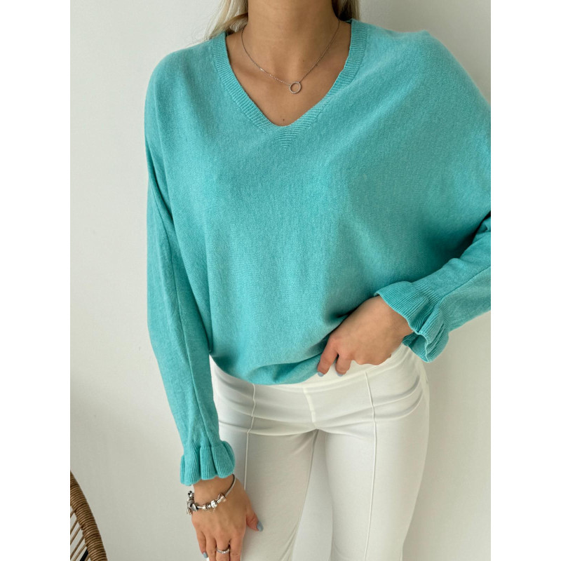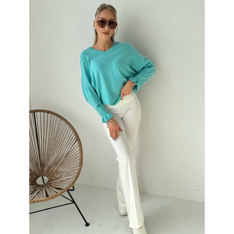 Sweter ÉLÉGANCE to definicja kobiecej prostoty, którą pokochasz za wygodę i wyjątkowe detale. Lekko oversize’owy krój z dekoltem w serek pięknie układa się na sylwetce, a delikatna falbanka przy mankietach dodaje całej stylizacji mega uroku.