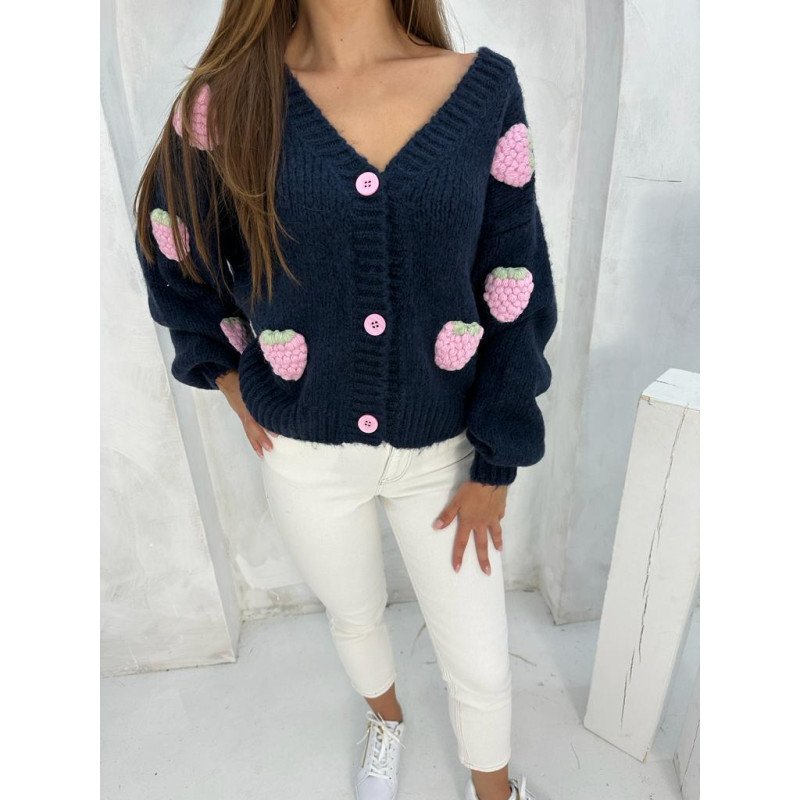 Kardigan Strawberry to uniwersalny dodatek do wielu stylizacji - wiosną i latem założysz go do kolorowych sukienek, jesienią i zimą stworzysz z nim komfortowy i ciepły outfit.