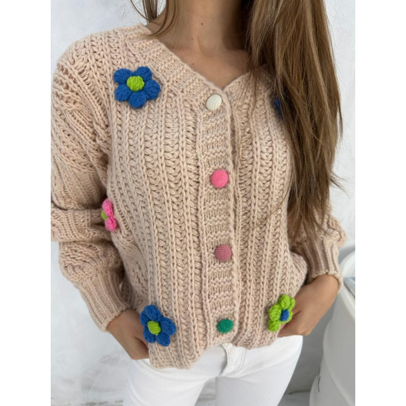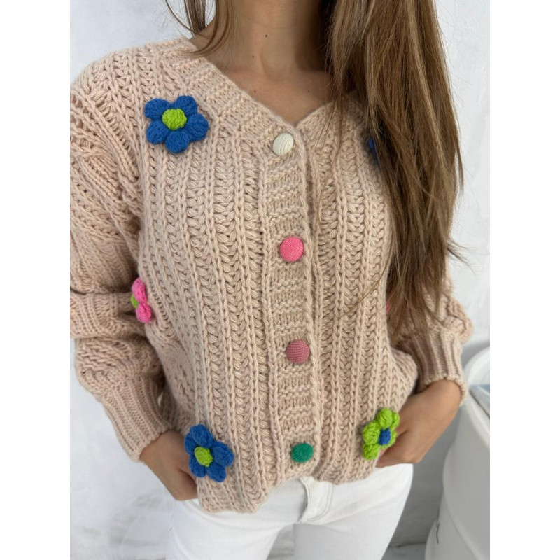 Kardigan z mini kwiatuszkami - camel
