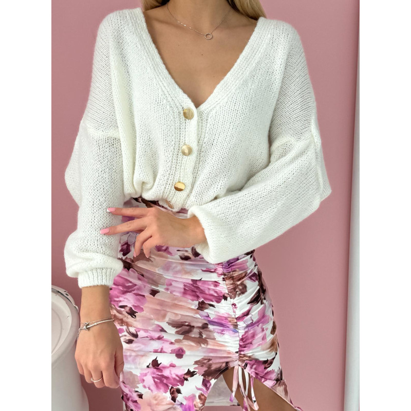 Nasz kardigan wietnie sprawdzi się jako uroczy dodatek do ołówkowych spódniczek, crop topów czy braletki.